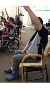 スタッフの「負けたら前ですよ」という無茶振り(?)にしっかり応えて、最高の見せ場を作ってくださった男性利用者様。