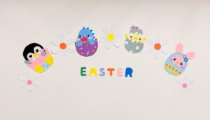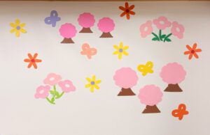 デイサービスのフロアは今、春の柔らかな色彩に包まれています。