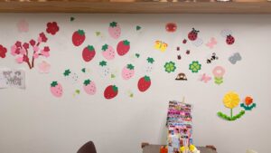 3月から少しずつ増えてきた、真っ赤なイチゴや、ふんわりと咲く桜の飾り。
