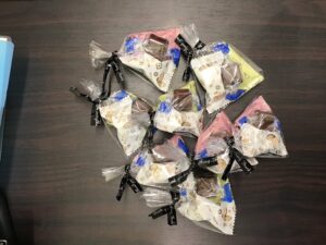 「Thank you」のリボンを添えてお一人おひとりに手渡しすると、