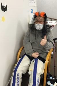 小さなハロウィンのカチューシャをつけて、にっこり笑顔でリハビリに励む方もいらっしゃいました😄