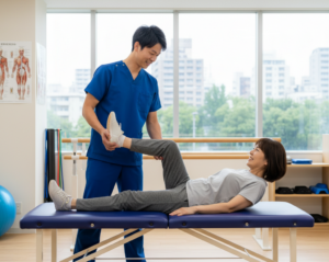 運動療法は、身体全体または一部を動かすことで、症状の軽減や身体機能の回復を促します。起きる、立つ、座るといった基本動作のトレーニングや歩行練習、関節の動きを改善する練習、筋力や体力を高めるトレーニングも運動療法です。